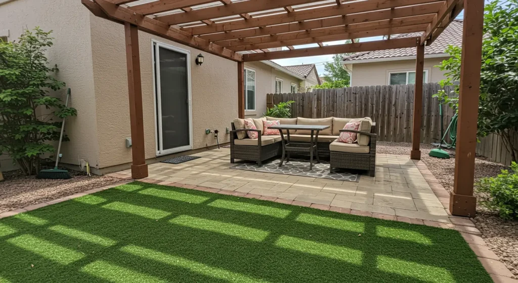 For a soft, green upgrade, artificial turf costs between $4 and $15 per square foot. It’s pet-friendly, low-maintenance, and installs easily over concrete—great for creating a cozy, lawn-like space without the upkeep.