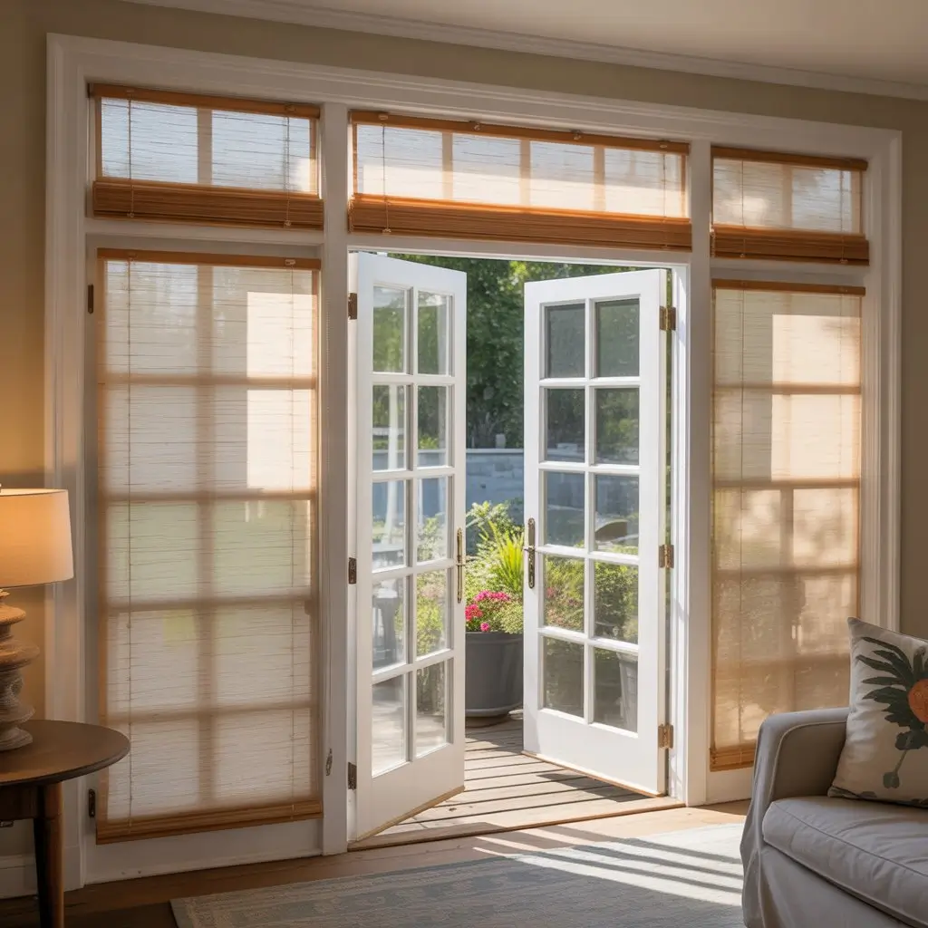 We have French doors leading to our back porch, and figuring out how to cover them without blocking access was genuinely frustrating. I tried regular curtains (annoying to pull back every time), tried stick-on privacy film (looked cheap), and finally installed roller shades that roll up completely out of the way. The shades diffuse light beautifully but don’t obstruct the doors at all.