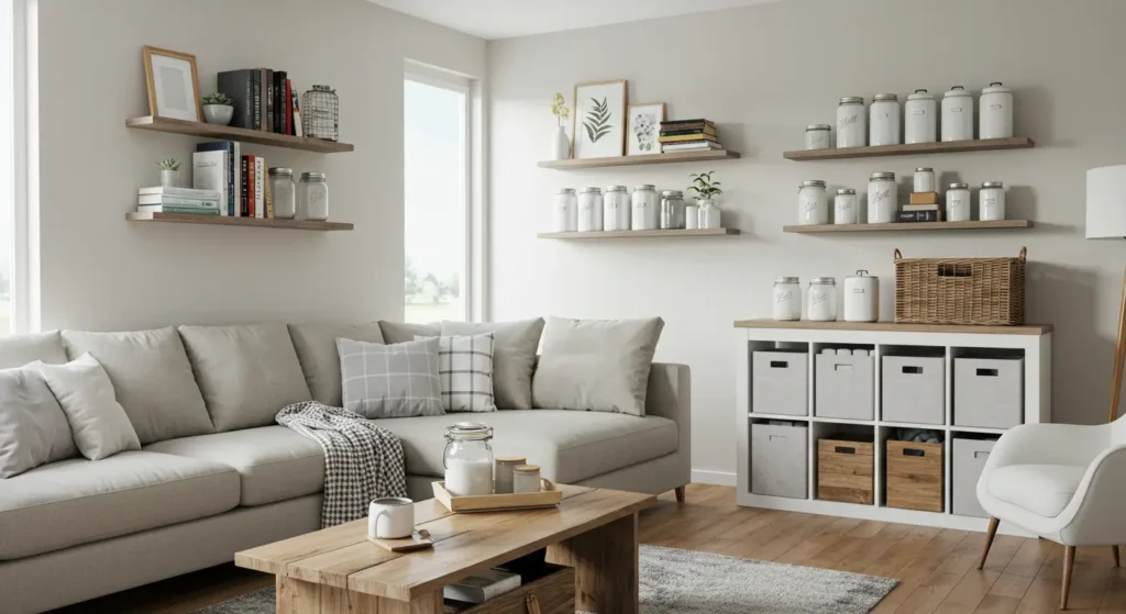 Use your space wisely with smart storage. Put up shelves or bookcases on walls to save floor space. Turn old furniture into new storage spots. Use pretty baskets, boxes, and trays to keep things tidy and stylish.