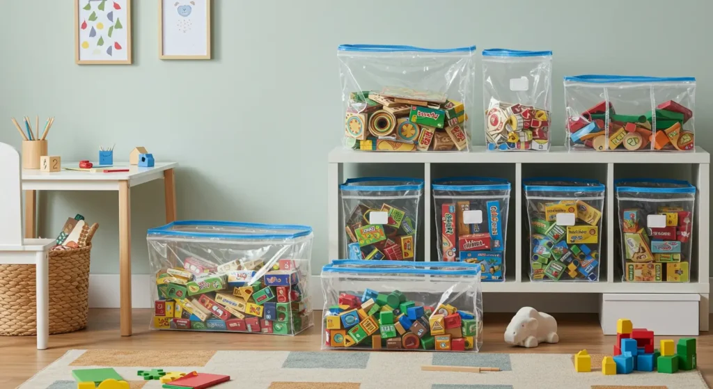 See-through storage bags are a must for toys with lots of pieces, like board games. They save space and make it easy to see what’s inside. Your child can quickly find the bag they need, making playtime more fun.
