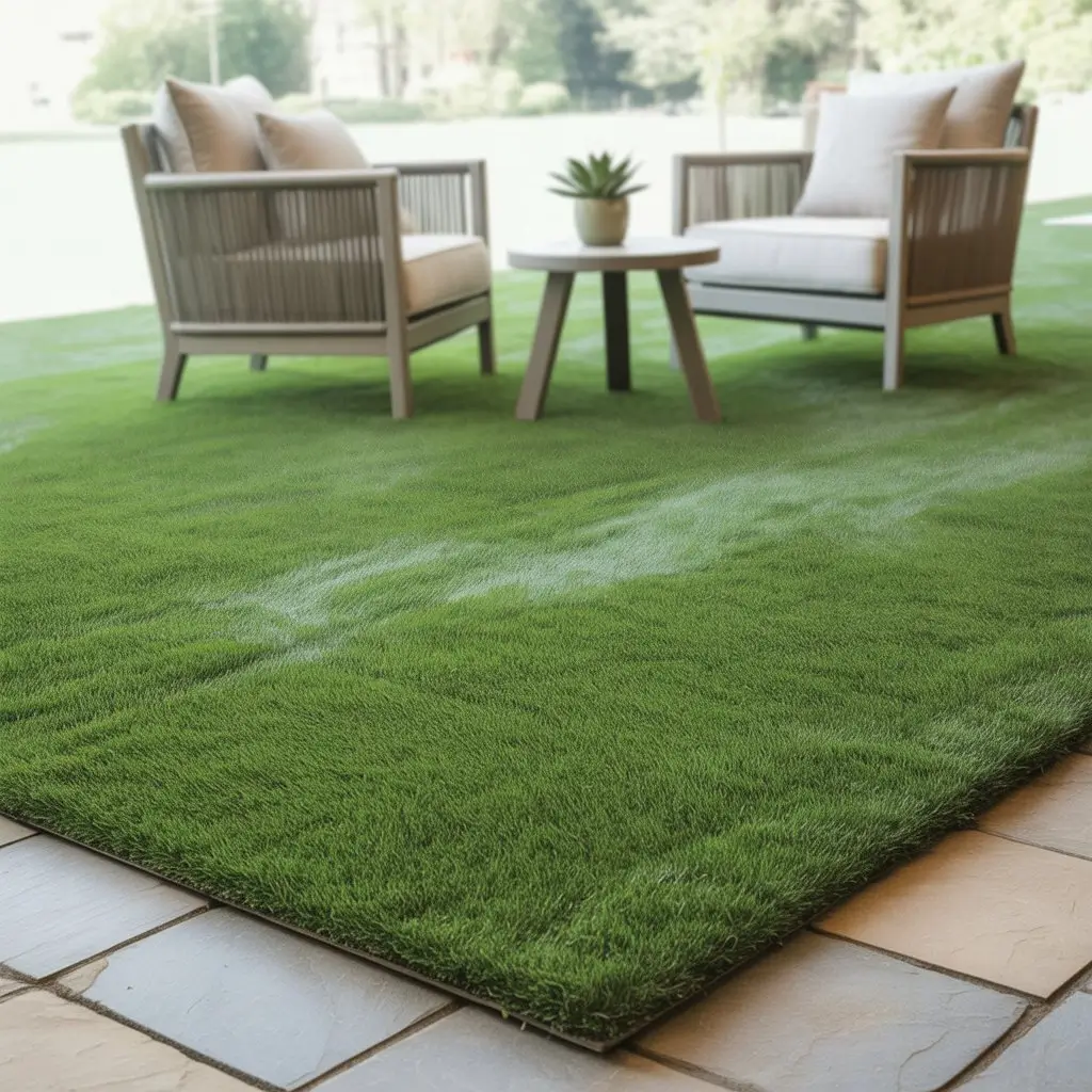 Artificial turf is an excellent choice for those who want a lush, green patio floor without ongoing maintenance costs.