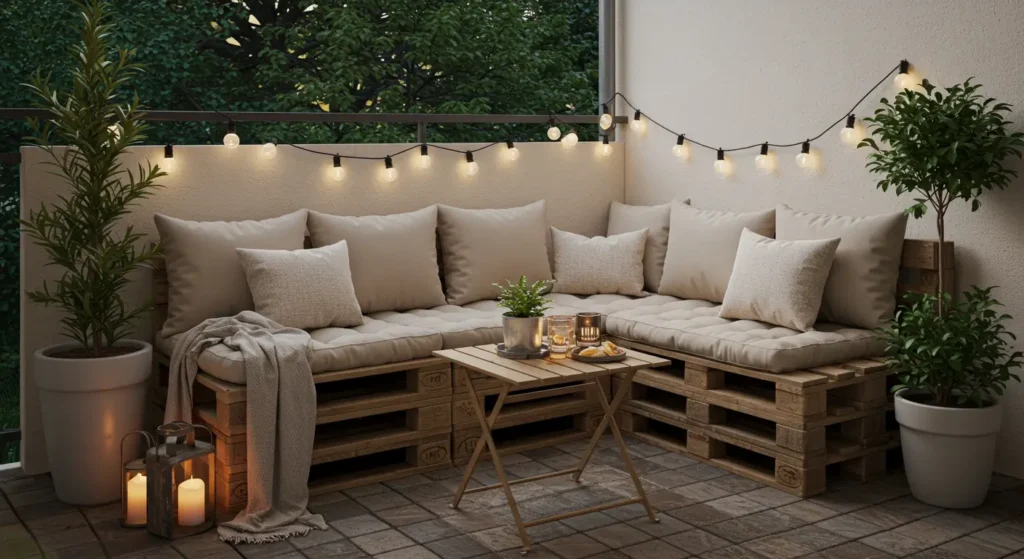Lighting sets the mood in the evening. String lights give a soft glow and make the space feel magical. LED candles add a warm touch to tables or ledges. Solar lights are a budget-friendly option that work without wiring.