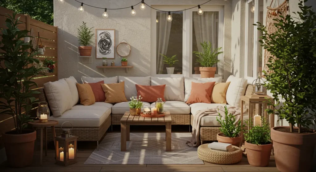 Creating a cozy outdoor space starts with simple, effective decoration. With the right lighting, greenery, and soft furnishings, even a small patio can feel warm and welcoming.