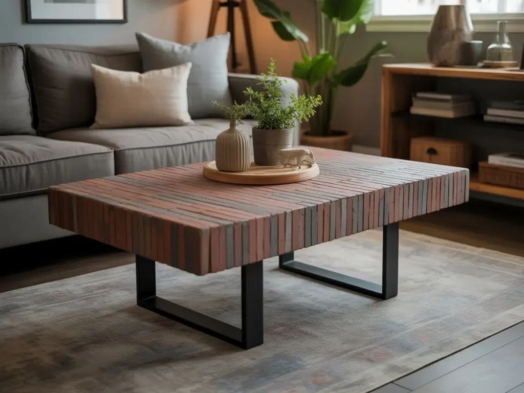 • Coffee Tables: Create a custom coffee table with a thin brick tile top, combining functionality with a bold design statement.
