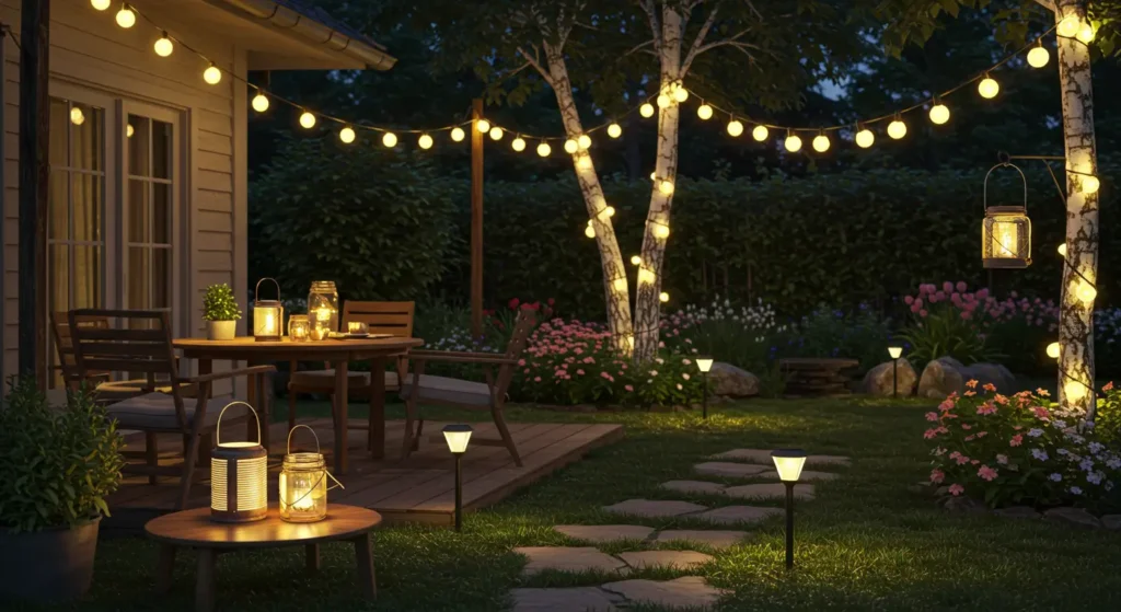 Good lighting can completely change the atmosphere of your patio, especially in the evenings. Luckily, you don’t need an expensive lighting setup to create a warm and inviting glow: