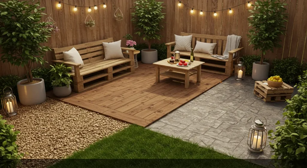 - Pallet Wood: Upcycling wooden pallets can give your patio a chic, natural vibe. Sand them down, stain them, and arrange them for a cozy wooden deck.