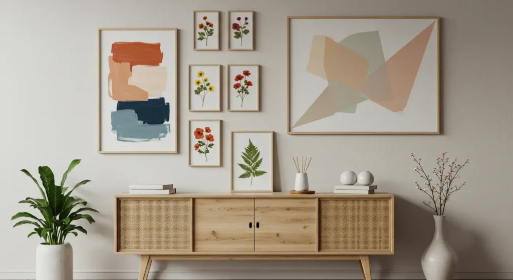 - Layout Planning: Arrange your art pieces on the floor first to experiment with the placement before putting them on the wall.