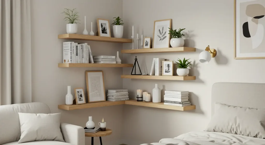 Floating shelves not only save space but also provide a sleek way to display your favorite items.