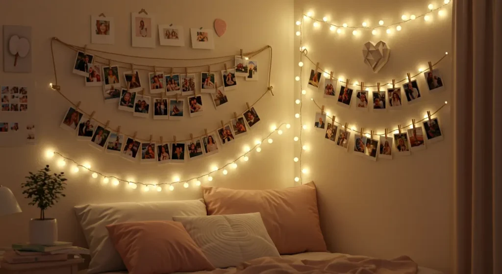 - Light-Up Displays: Attach pictures to string lights for a warm, nostalgic feel.